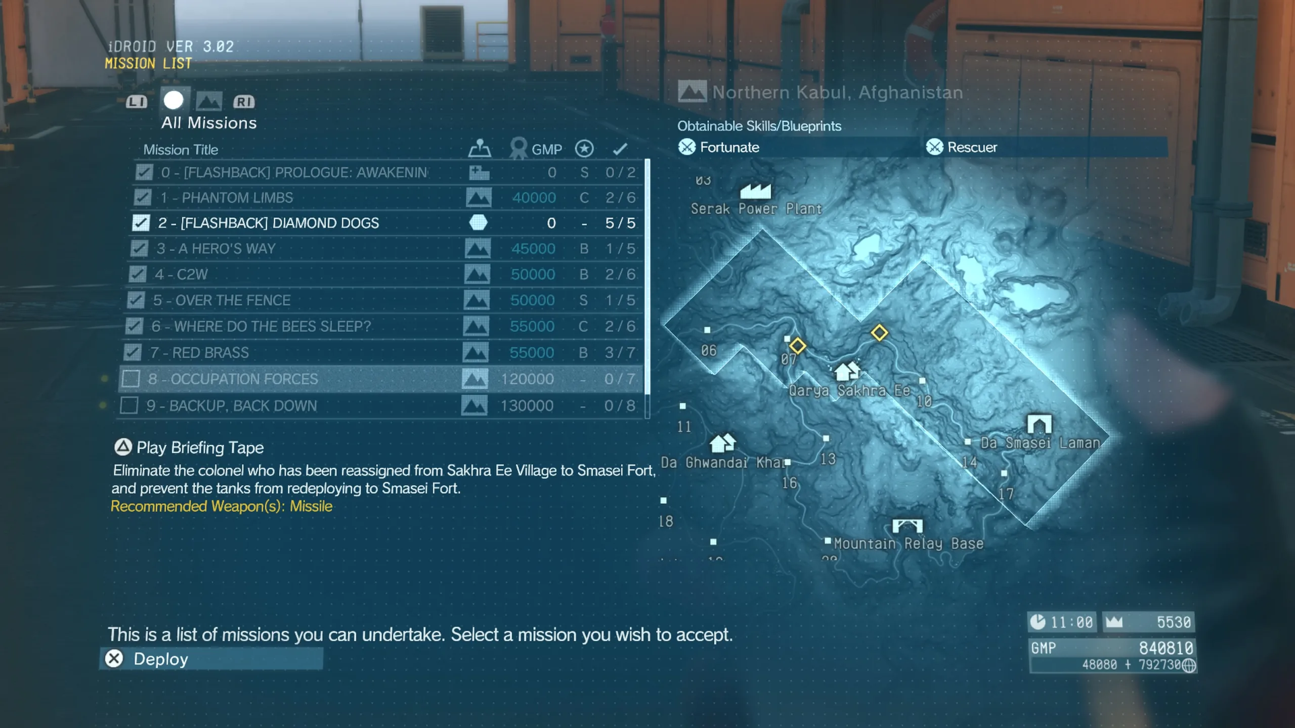 W śmigłowcu paramilitarnej organizacji Snake’a znaleźć można jednostkę PC (bądź innego podstawowego komputera) podpiętą do systemu iDroid (o którym za chwilę), co pozwala na zautomatyzowane koordynowanie i przesył danych między agentami, żołnierzami i główną jednostką bazy.